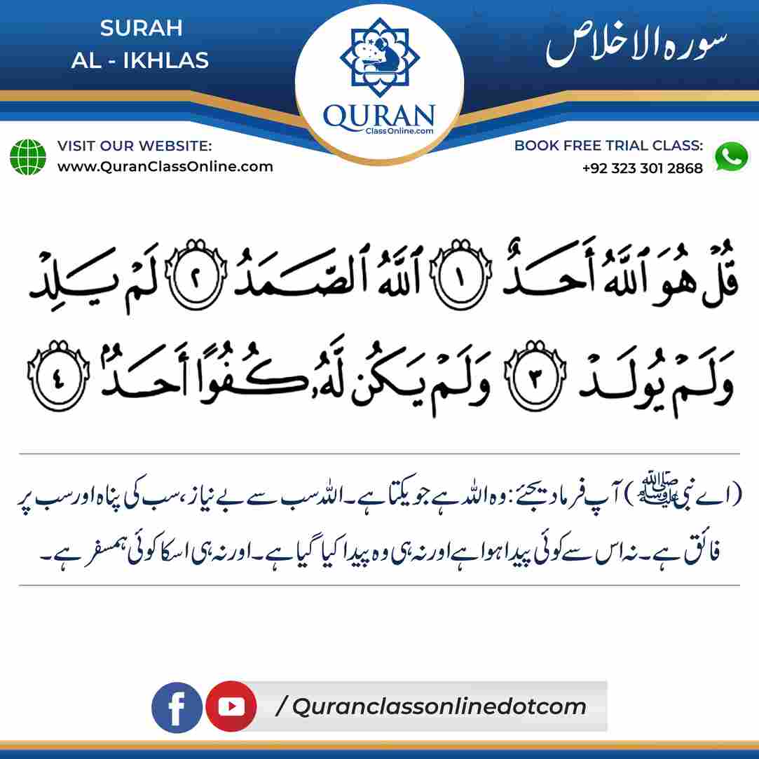 Surah -Al-Ikhlas is a Quranic Surah which means (The Unity)