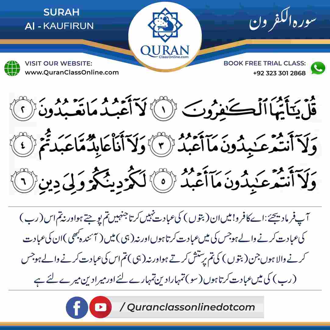 Surah – Al-Kaufirun is a Quranic Surah which means (The Disbelievers)