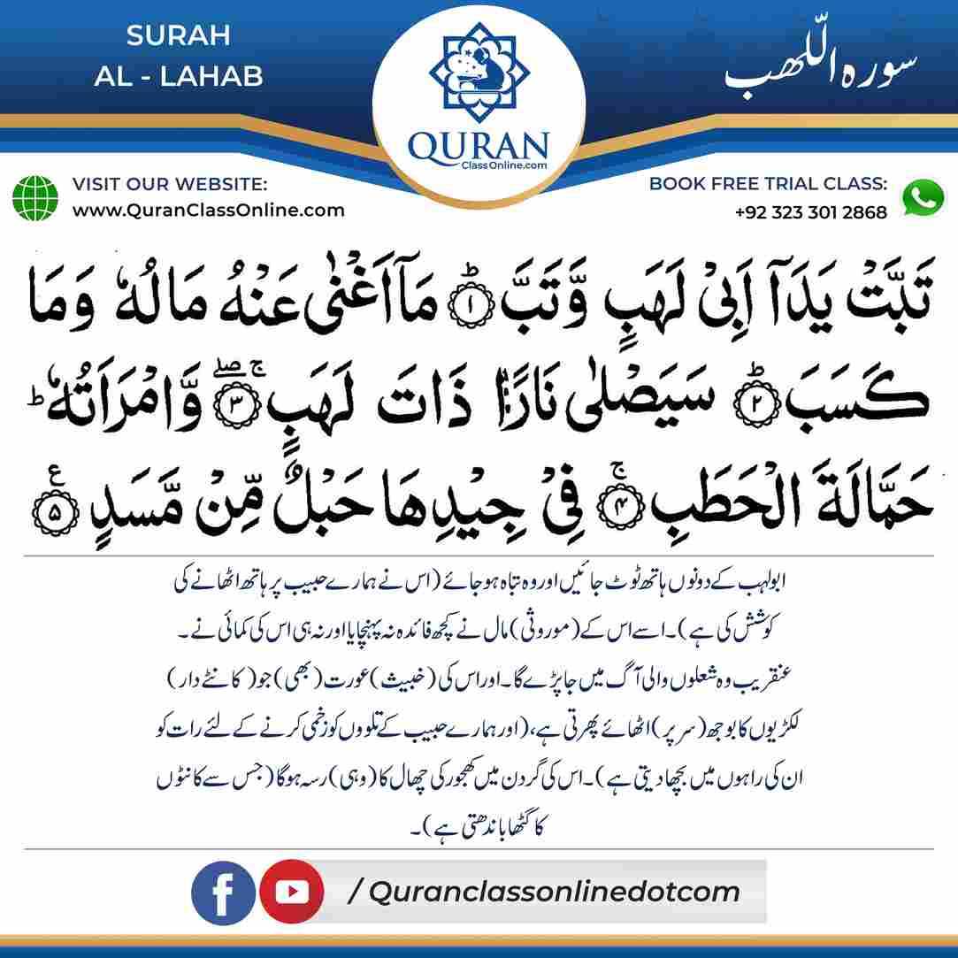 Surah-Al-Lahab is a Quranic Surah which means(The Flame)