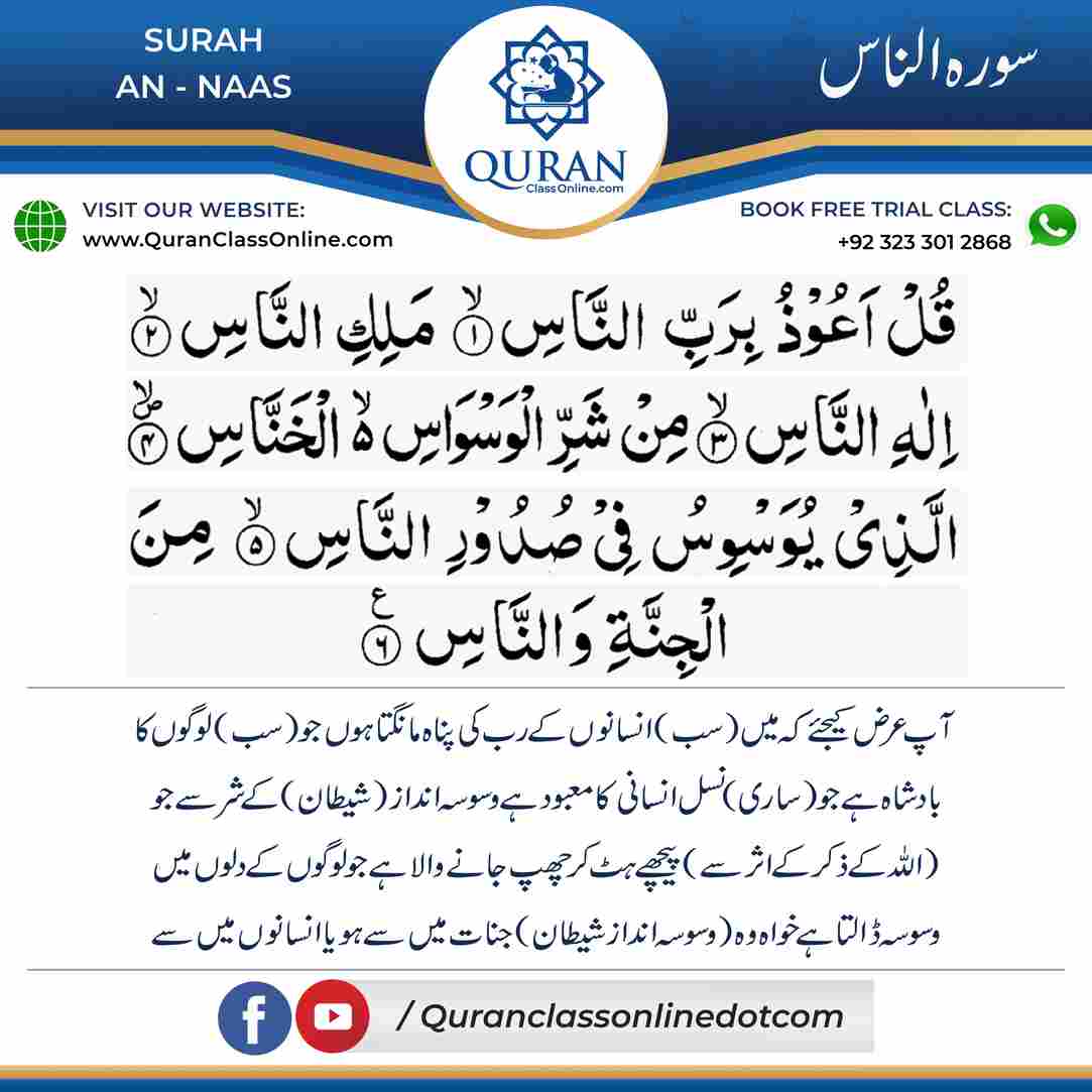 Surah An Naas is a Quranic Surah which means the (The Men