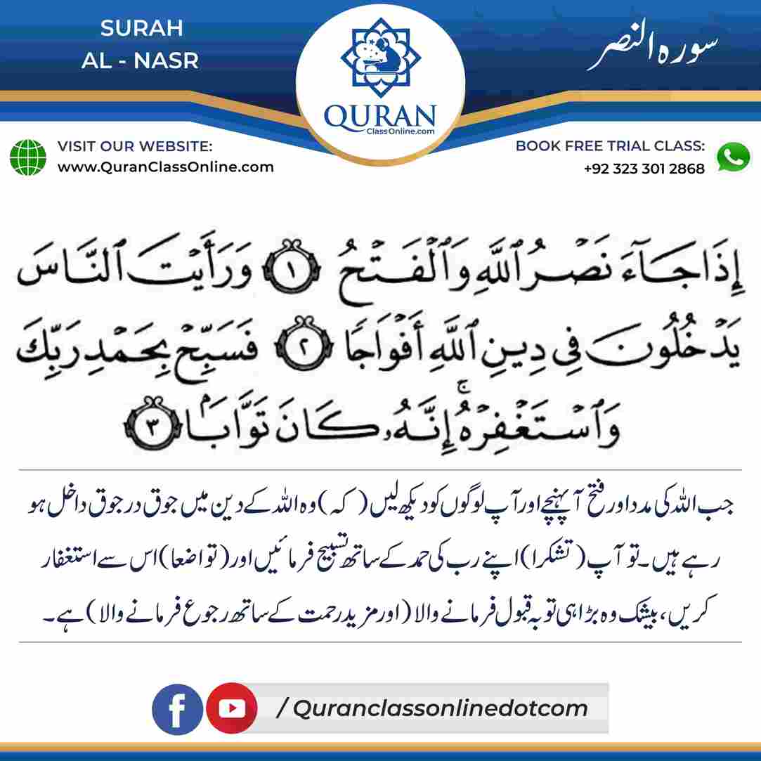 Surah -Al-Nasr is a Quranic Surah which means (The Help)