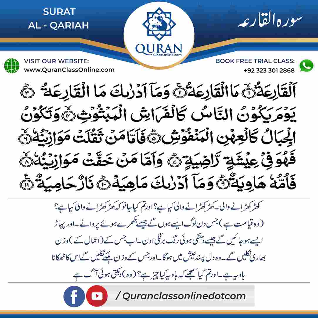 Surah -Al-Qari’ah is a Quranic Surah which means (The Calamity)
