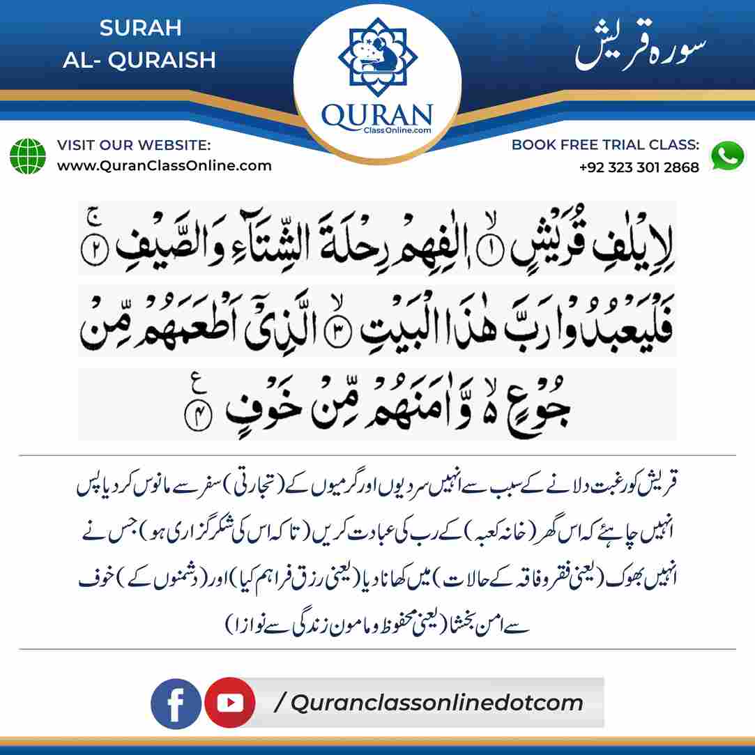 SURAH AL- quraish is a Quranic Surah which means ( THE QURAISH)