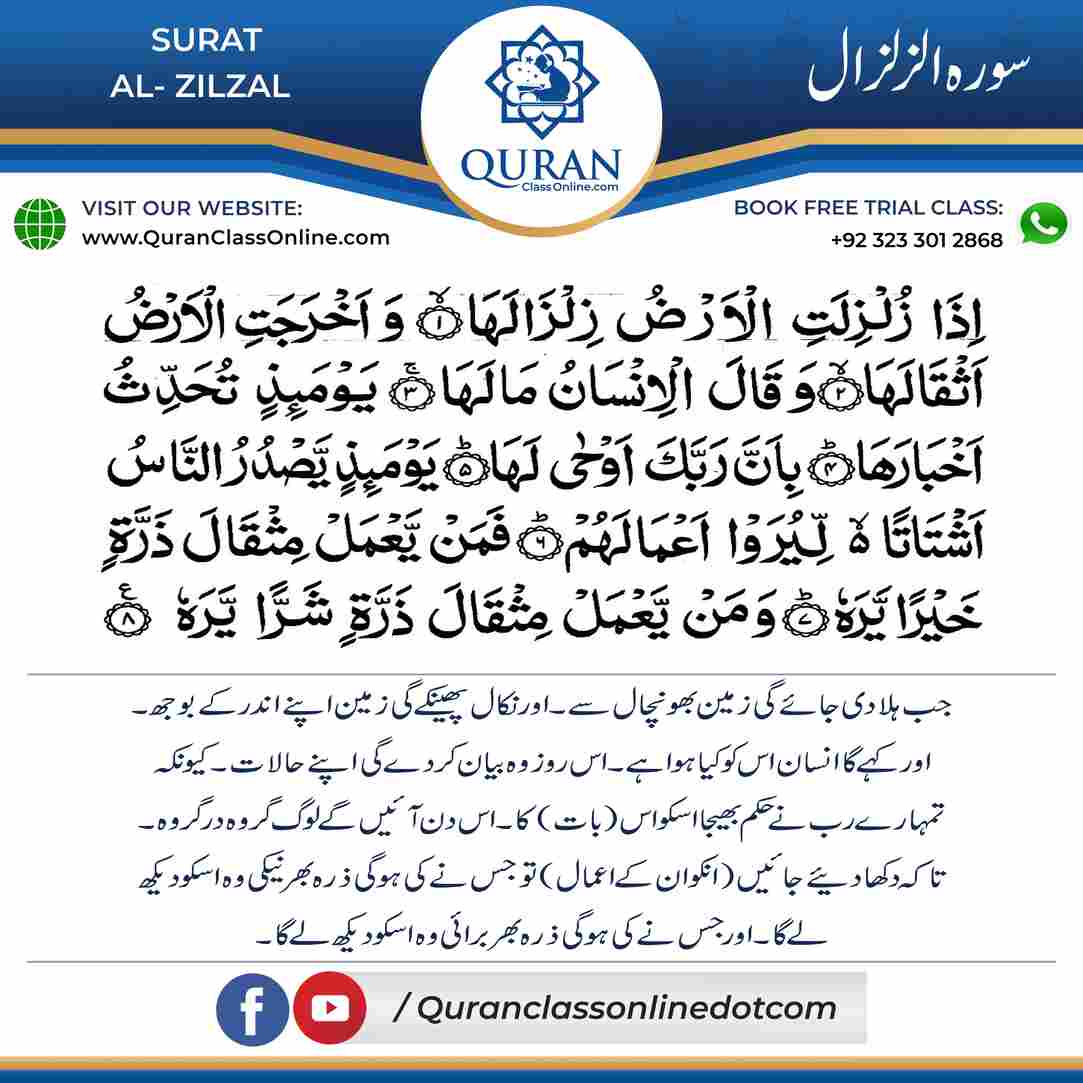 Surah -Al-Zilzal is a Quranic Surah which means ( The Shaking)